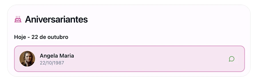 Sim, a ferramenta de Aniversariantes destaca datas do dia e do mês automaticamente. Você pode enviar mensagens personalizadas via WhatsApp diretamente do sistema, fortalecendo o vínculo com os clientes e incentivando retornos.