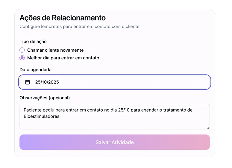 Se o cliente não puder marcar ou falar no momento, agende uma tarefa para o melhor dia.